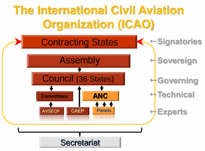 ICAO’s structure ensures that sovereign states govern through the Assembly and Council, while technical experts (through ANC and Panels) develop global standards, all supported by a permanent Secretariat that implements and coordinates international aviation policy.
